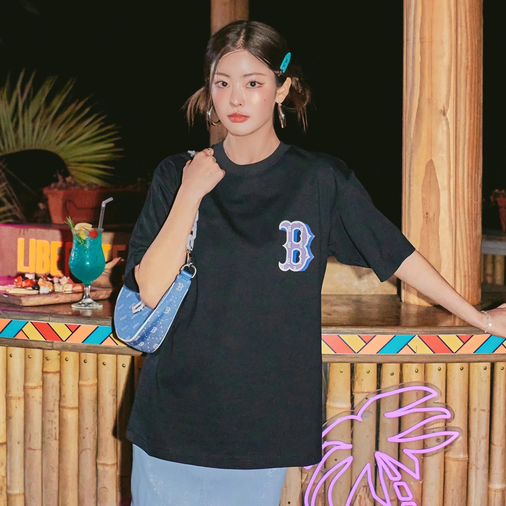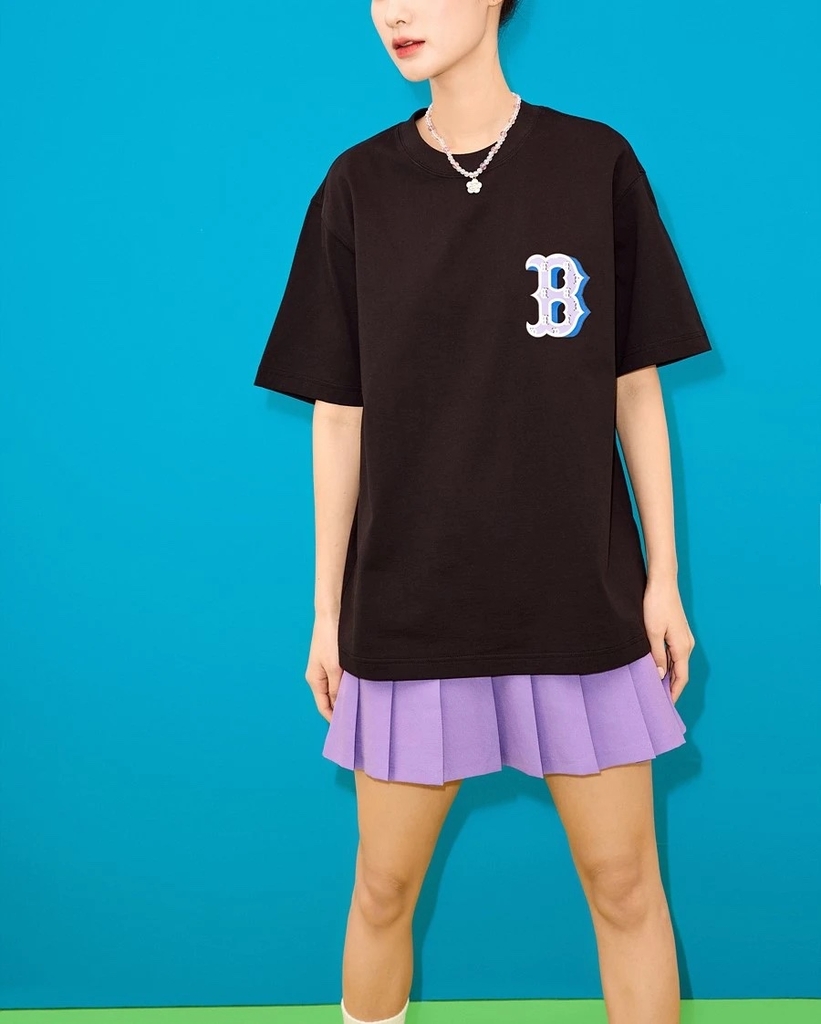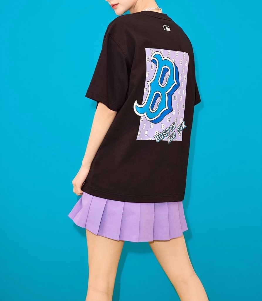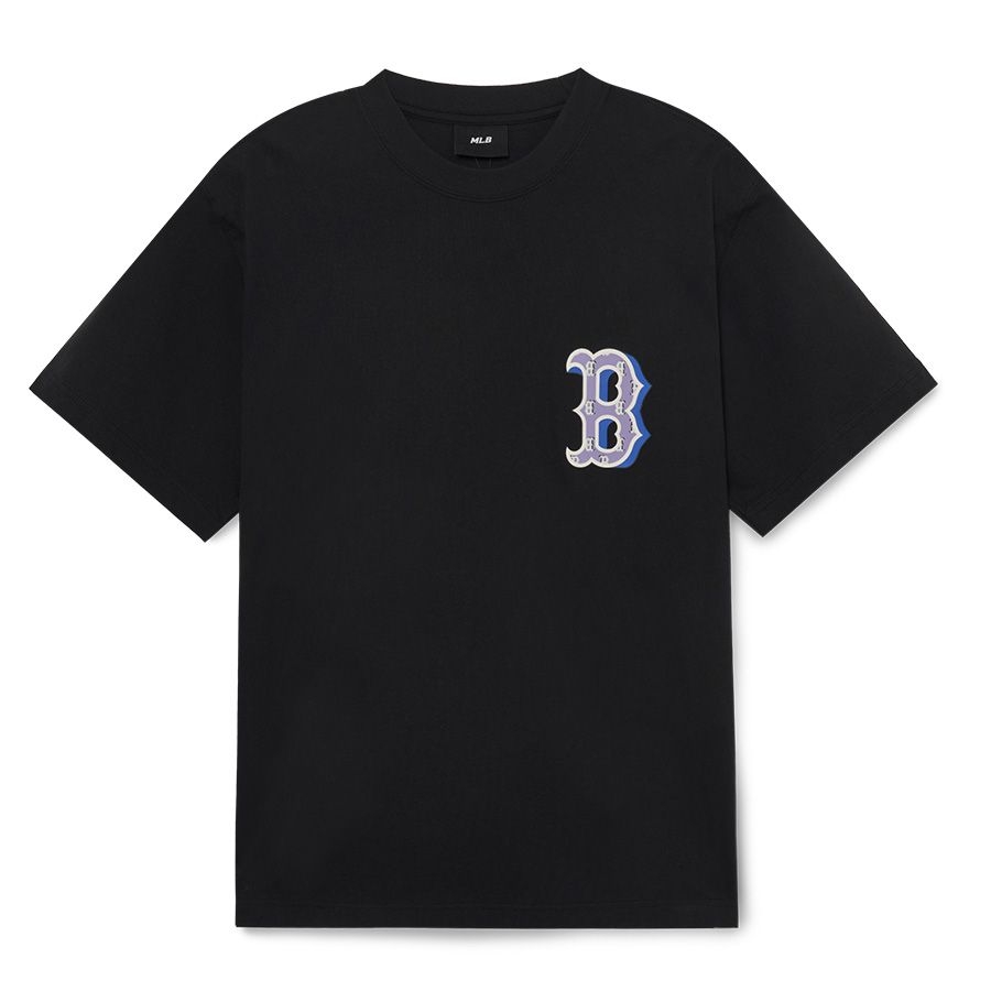 MLB Basic Street Logo Overfit Short Sleeve T-Shirt Boston Red Sox BLACK - Áo thun cổ tròn tay lỡ màu đen