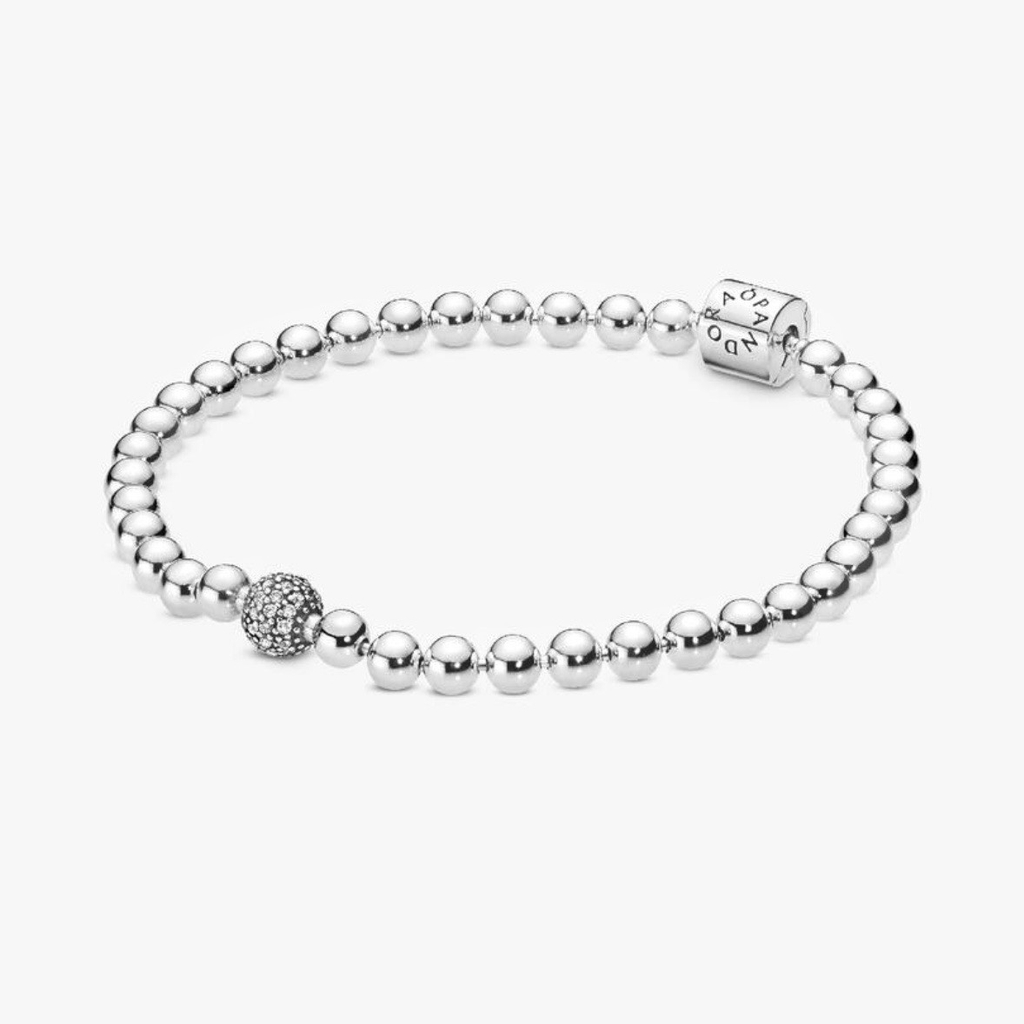 CHÍNH HÃNG - PANDORA Beads & Pavé Bracelet (Barrel clasp, Silver Sterling)- Vòng/lắc bạc 925, khoá trụ, dáng bi tròn - JEWELRY