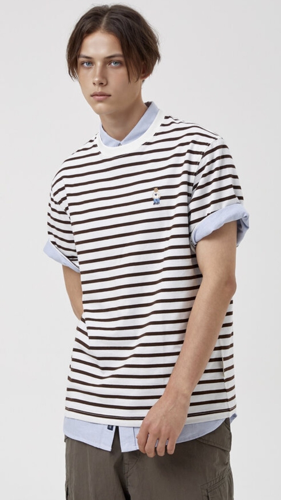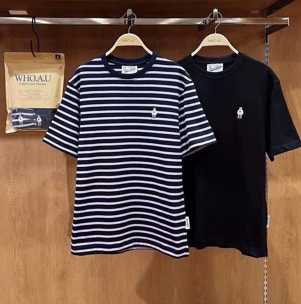 CHÍNH HÃNG - WHOAU (2PACK/SET) STEVE BEAR STRIPE T-SHIRT - Bộ 2 áo thun màu đen+sọc