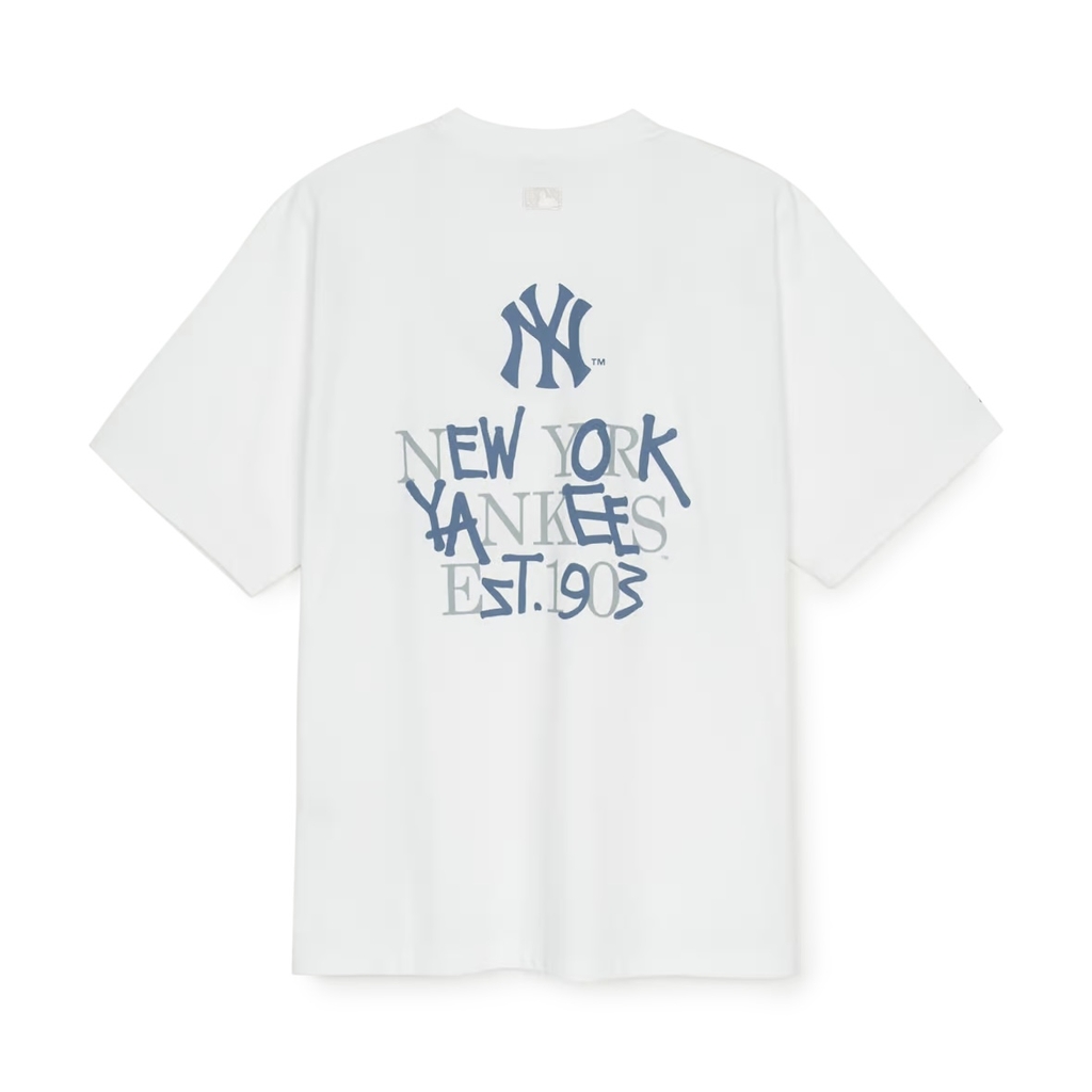 MLB Basic Letter Mega Overfit Functional Short Sleeve T-Shirt New York Yankees - Áo thun cổ tròn tay lỡ màu trắng
