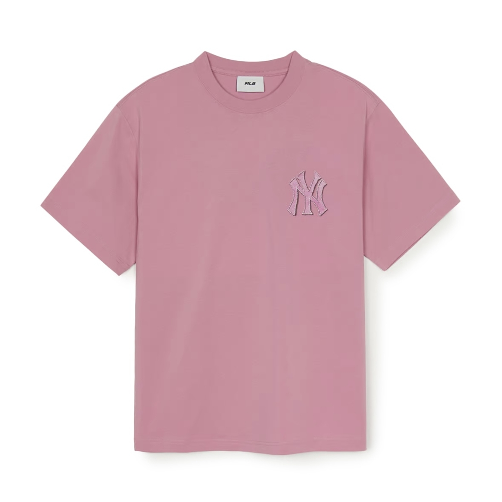 MLB Denim-like monotiv overfit functional short-sleeve T-shirt New York Yankees Pink - Áo thun cổ tròn, tay lở màu hồng