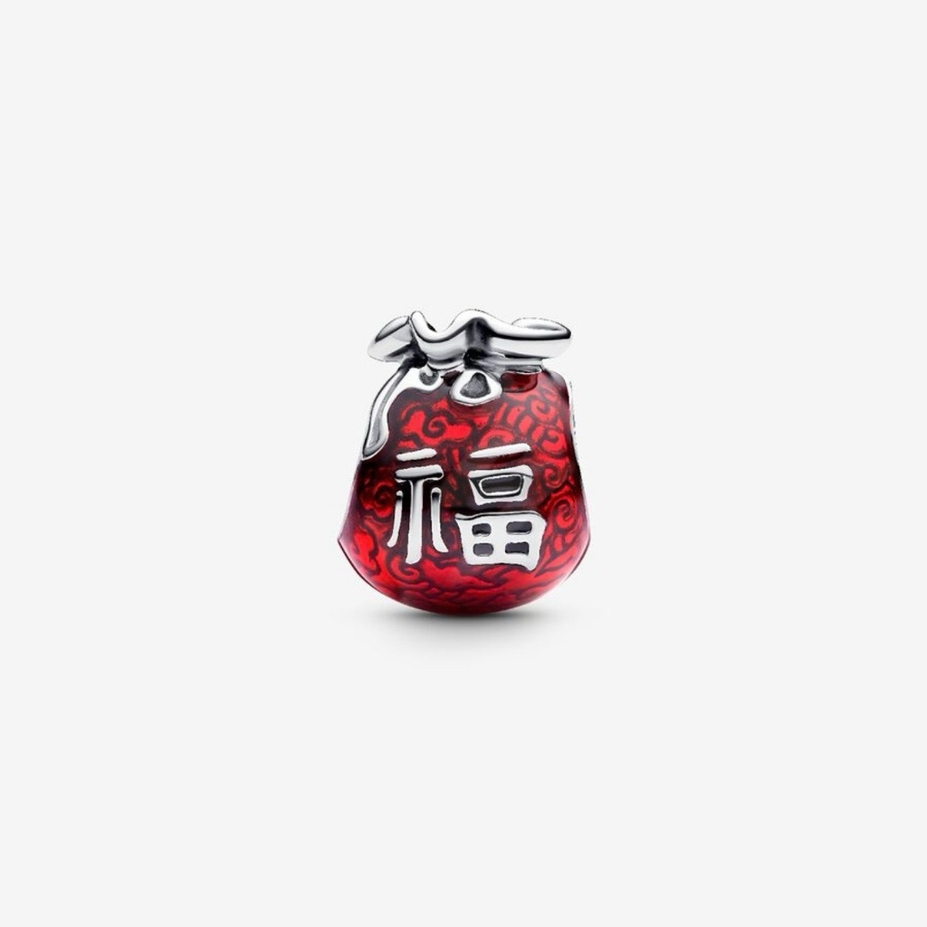 PANDORA Lucky Bag Charm (Sterling silver, Ename) - Hạt trang trí vòng tay, hình chiếc túi màu đỏ tráng men, chữ “Fu” hay “ Phú - Phúc”.