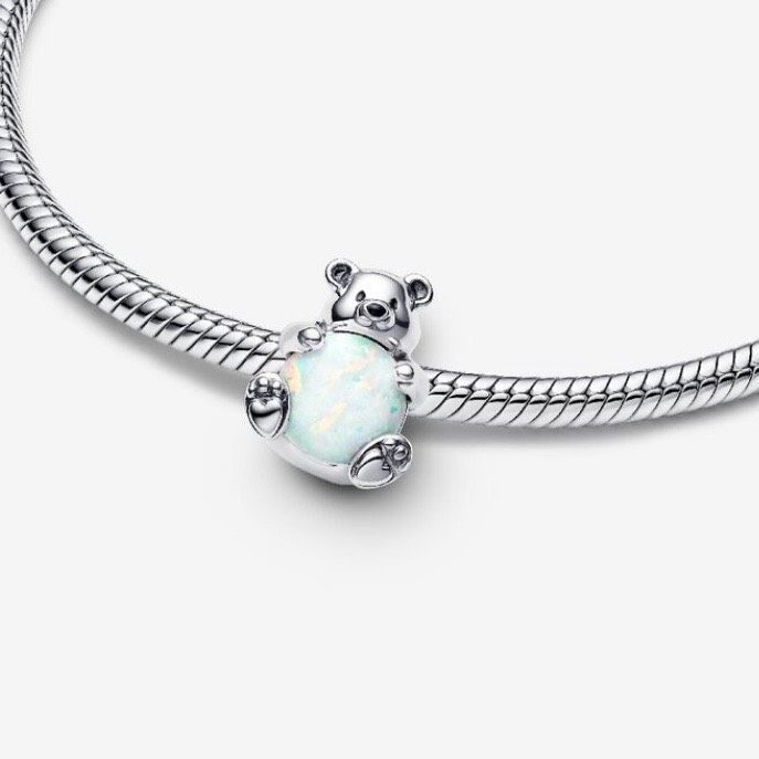 PANDORA Polar Bear Charm (Sterling silver, lab-created opal) - Hạt trang trí vòng tay hình gấu bắc cực ôm đá opal nhân tạo, bạc 925