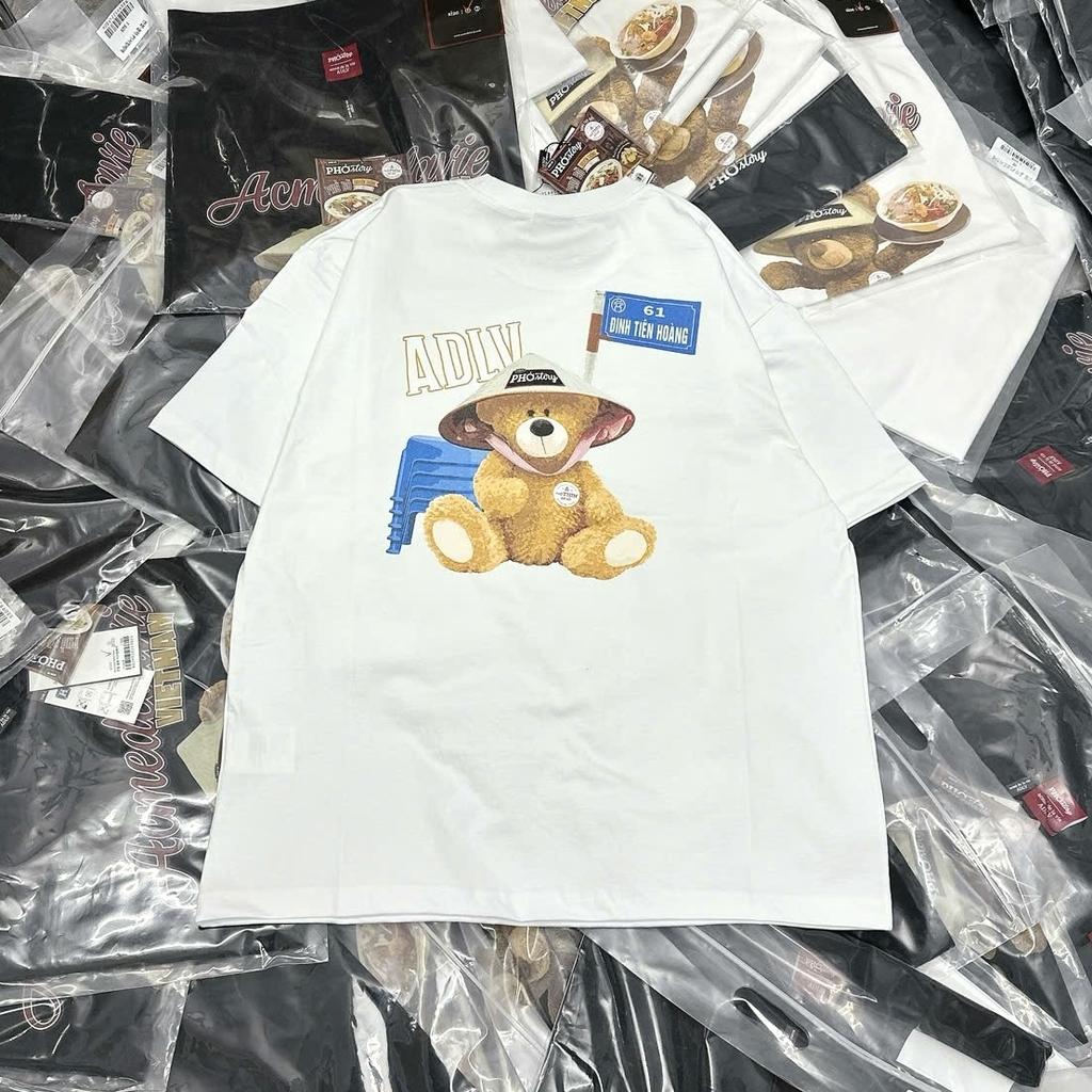 (PHỞ STORY x ADLV) ÁO THUN ADLV ROAD SIGN BEAR WHITE T-SHIRT