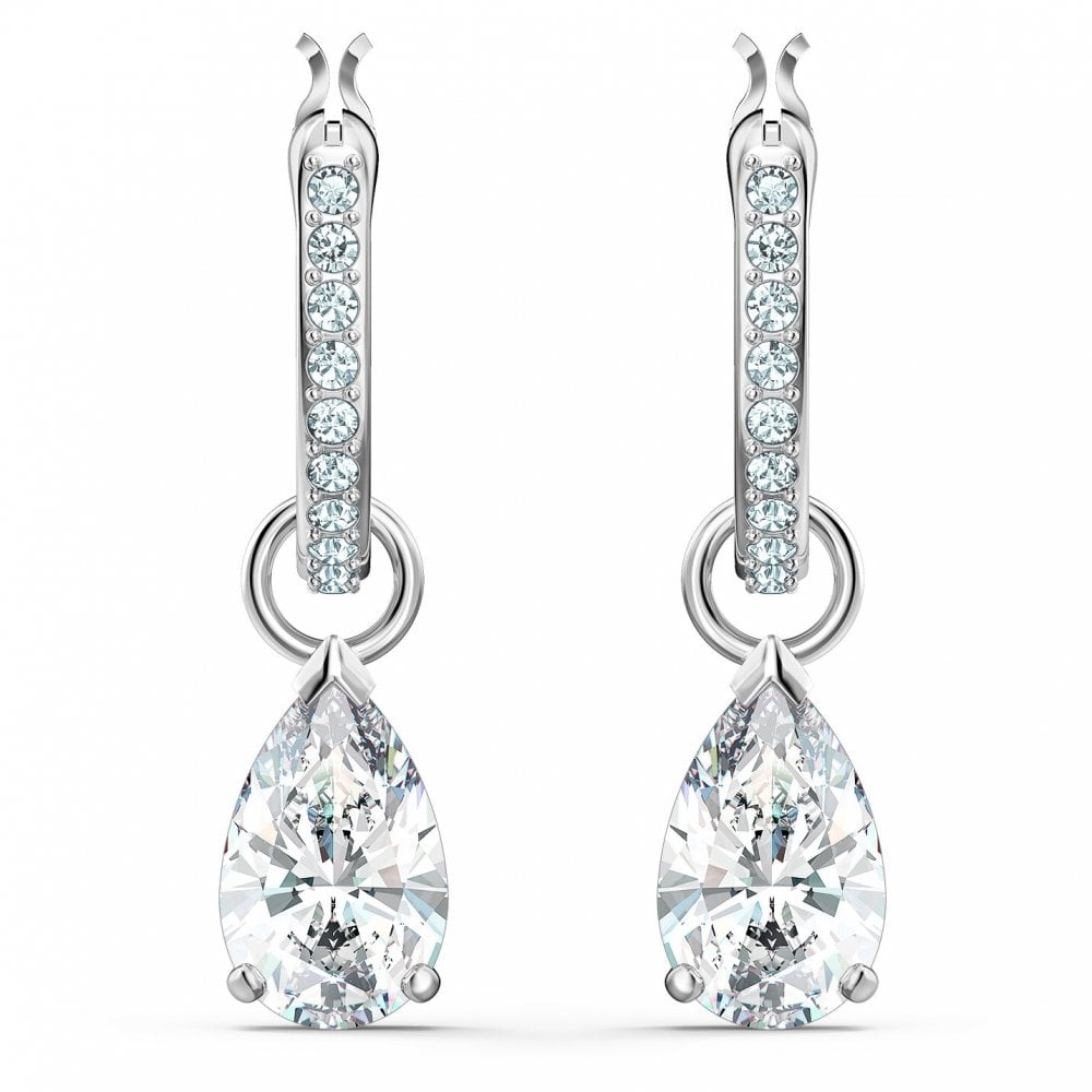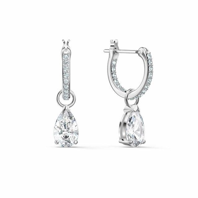 SWAROVSKI Attract Pear Mini Hoop Pierced Earrings (White, Rhodium Plated) - Khuyên tai pha lê trắng, cắt giọt - JEWERY
