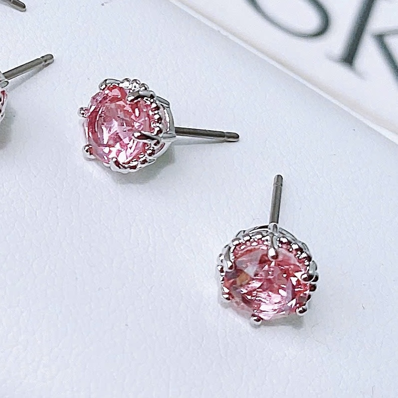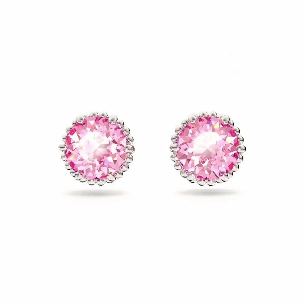 SWAROVSKI Birthstone stud earrings (Round cut, Dark Pink, Rhodium plated) - Khuyên tai, hình tròn, pha lê màu hồng đậm - JEWERY