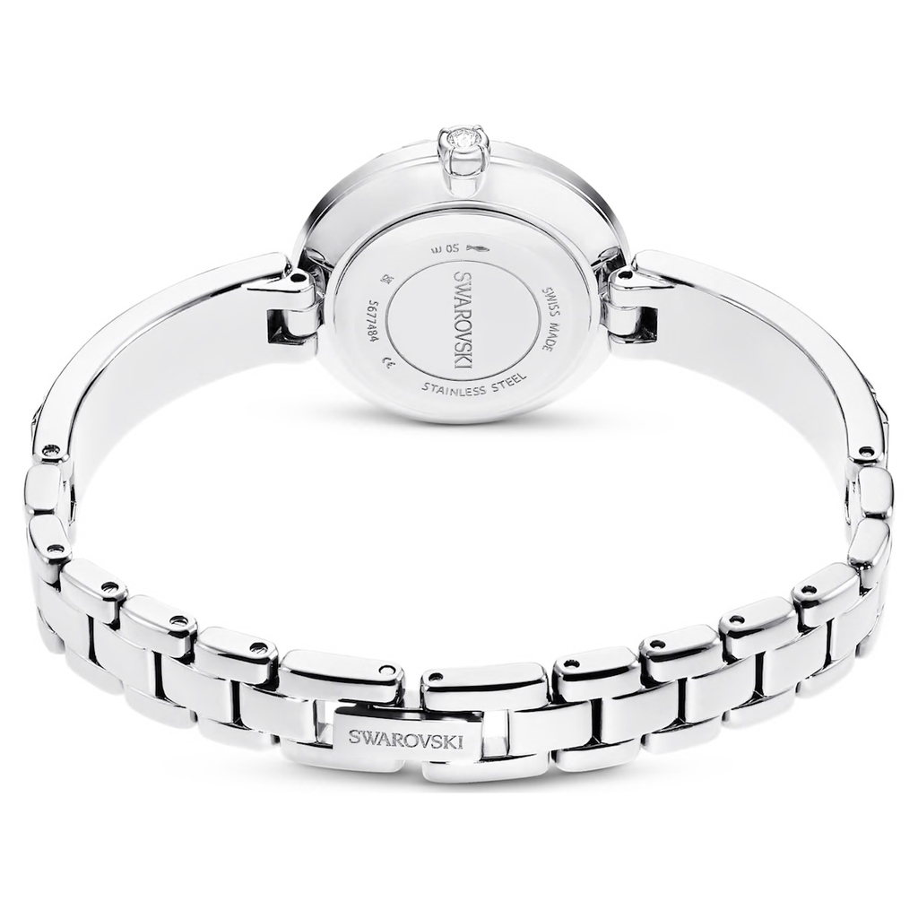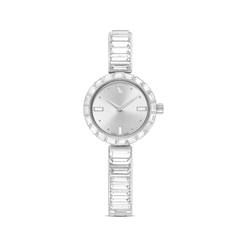 SWAROVSKI Matrix Bangle watch (Swiss Made, Crystal bracelet, White silver) - Đồng hồ, mặt tròn, dây kim loại, đính đá pha lê màu trắng - JEWELRY