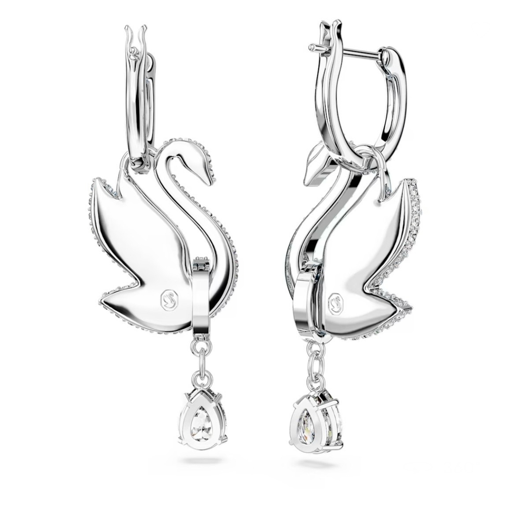 SWAROVSKI Swan earrings (Swan, White, Rhodium plated) - Khuyên tai, thiên nga, đính pha lê trắng - JEWERY