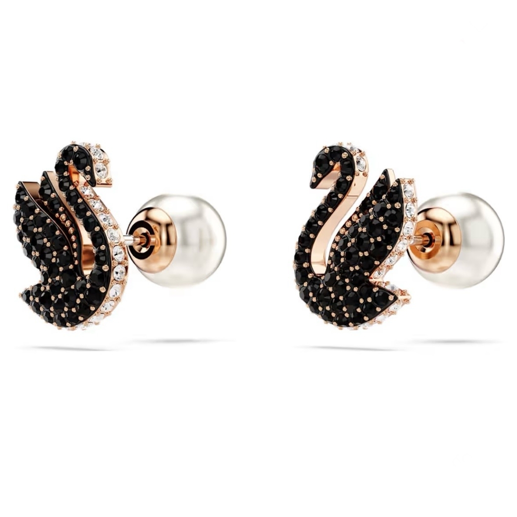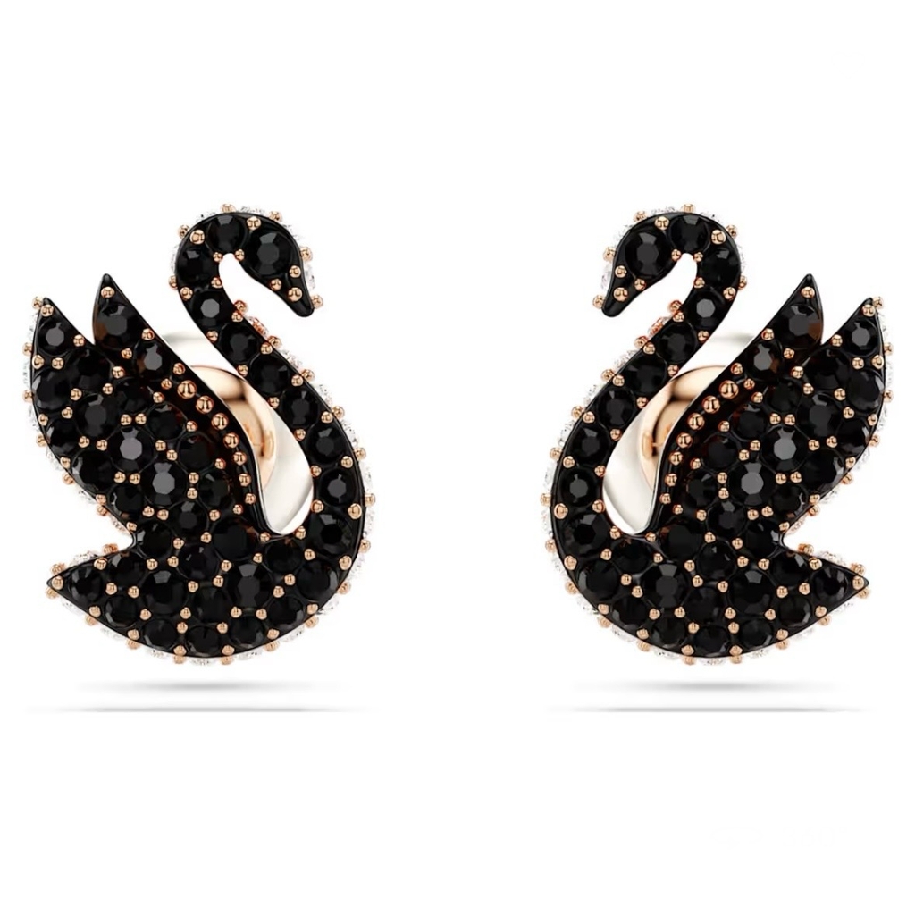 SWAROVSKI Swan stud earrings (Swan, Black, Rose gold-tone plated) - Khuyên tai thiên nga đen - JEWERY
