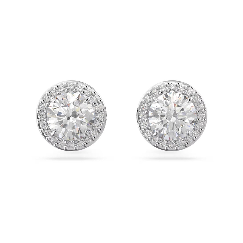 SWAROVSKI Una Angelic stud earrings (Round cut, Pavé, White, Rhodium plated) - Khuyên tai, pha lê trắng - JEWERY